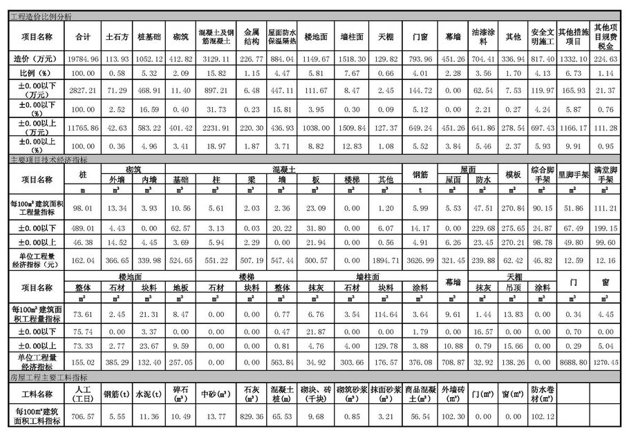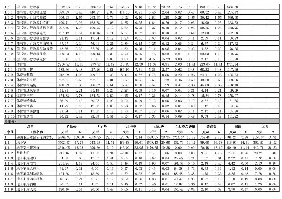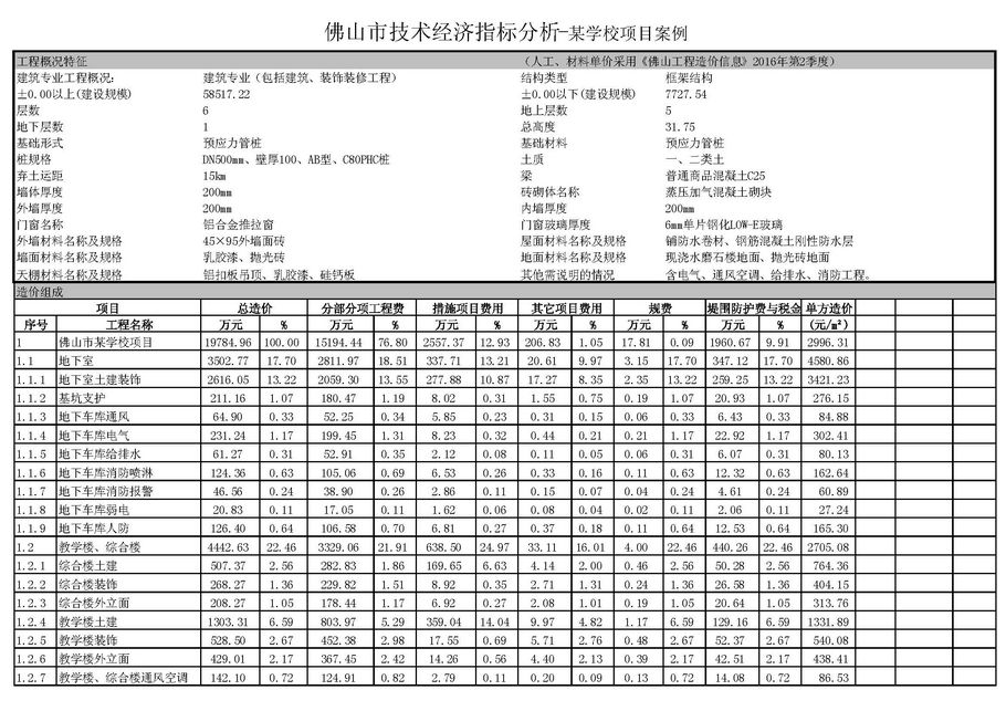 佛山市2016年第4季度技術經濟指標分析—某學校項目案例