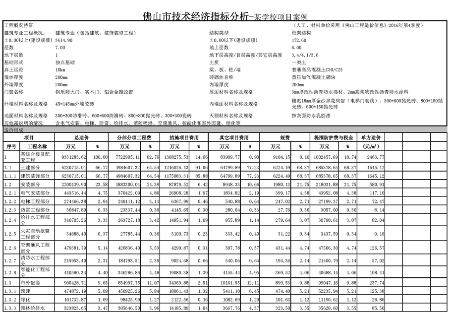 佛山市2017年第1季度技術經濟指標分析—某學校項目案例
