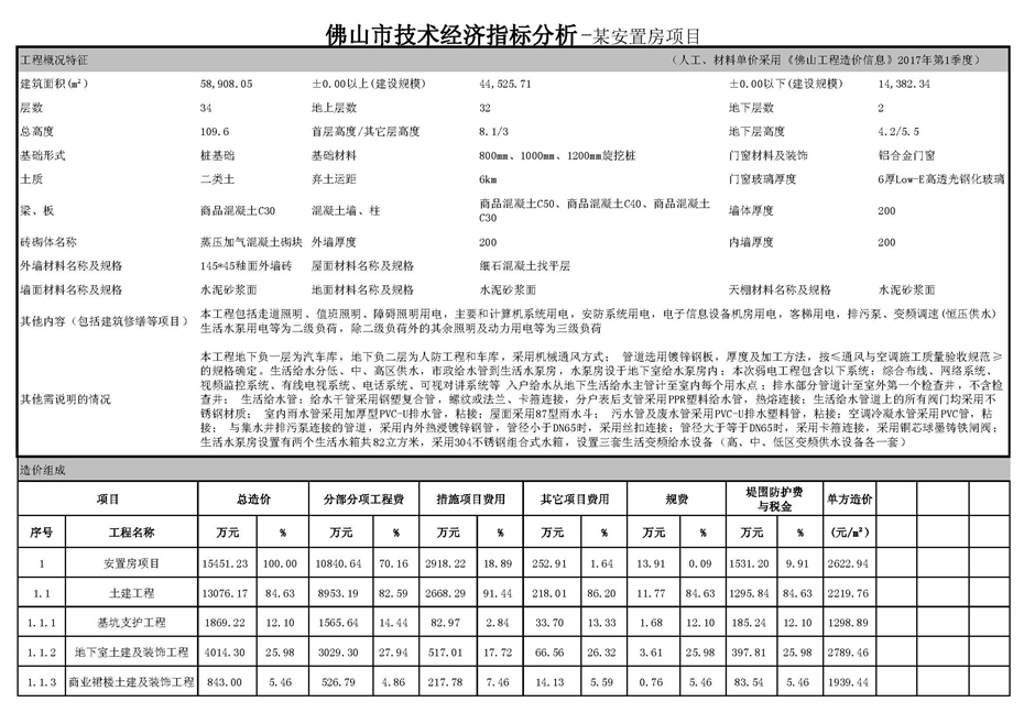 佛山市2017年第3季度技術經濟指標分析—某安置房項目