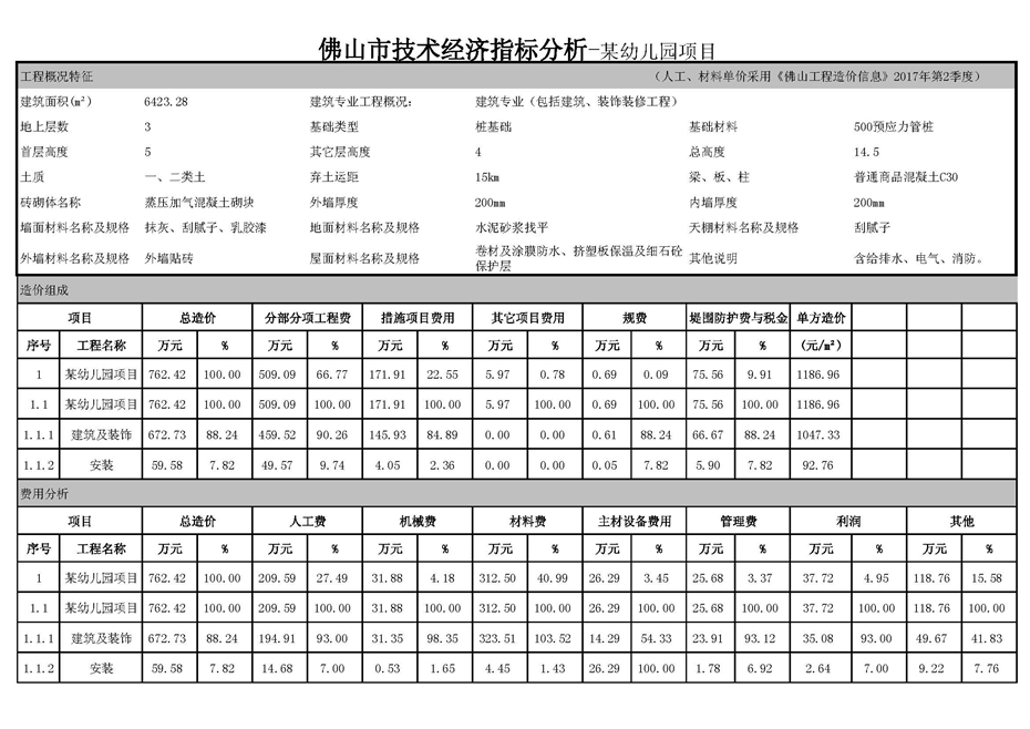 佛山市2017年第3季度技術(shù)經(jīng)濟(jì)指標(biāo)分析—某幼兒園項(xiàng)目