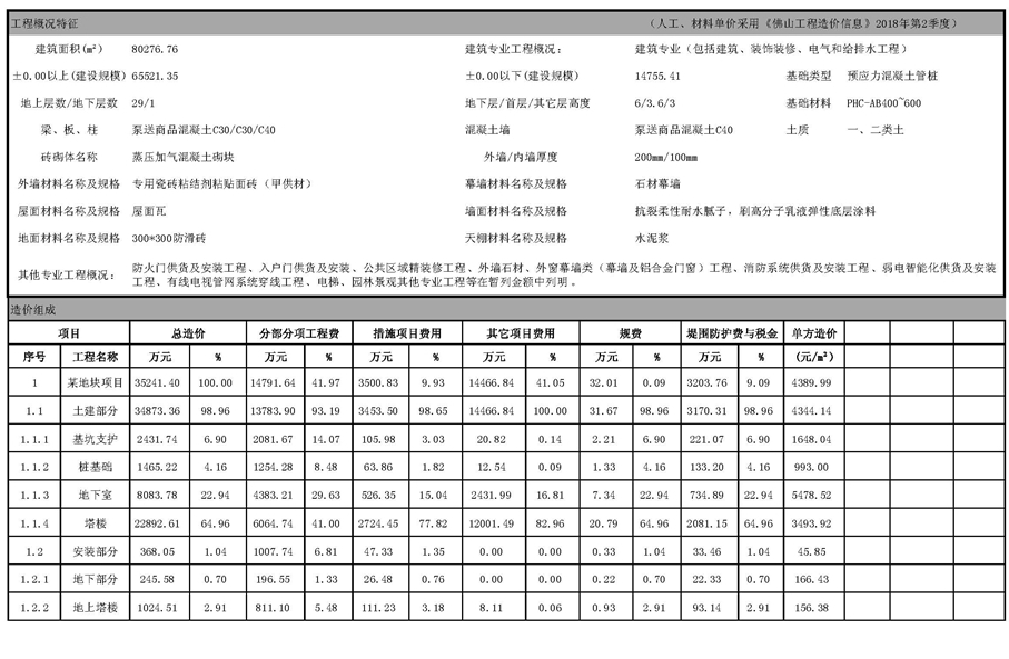 佛山市2018年第3季度技術經濟指標分析—某地塊項目