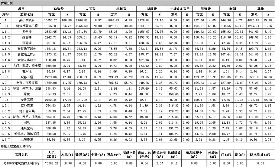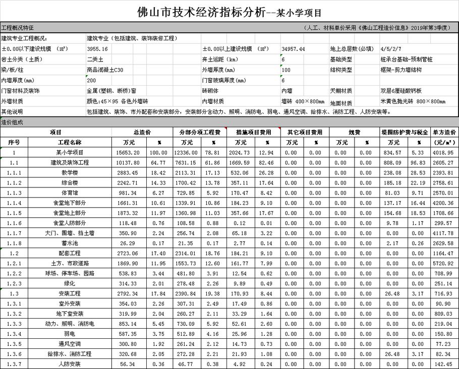 佛山市2019年第4季度技術經濟指標分析—某小學項目