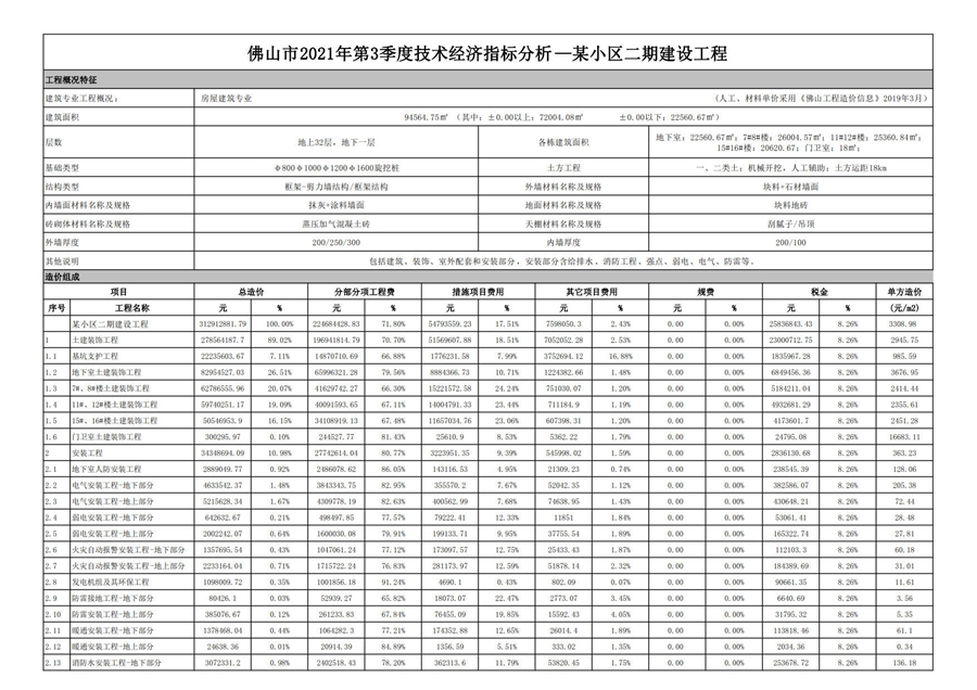 佛山市2021年第3季度技術(shù)經(jīng)濟指標分析—某小區(qū)二期建設(shè)工程