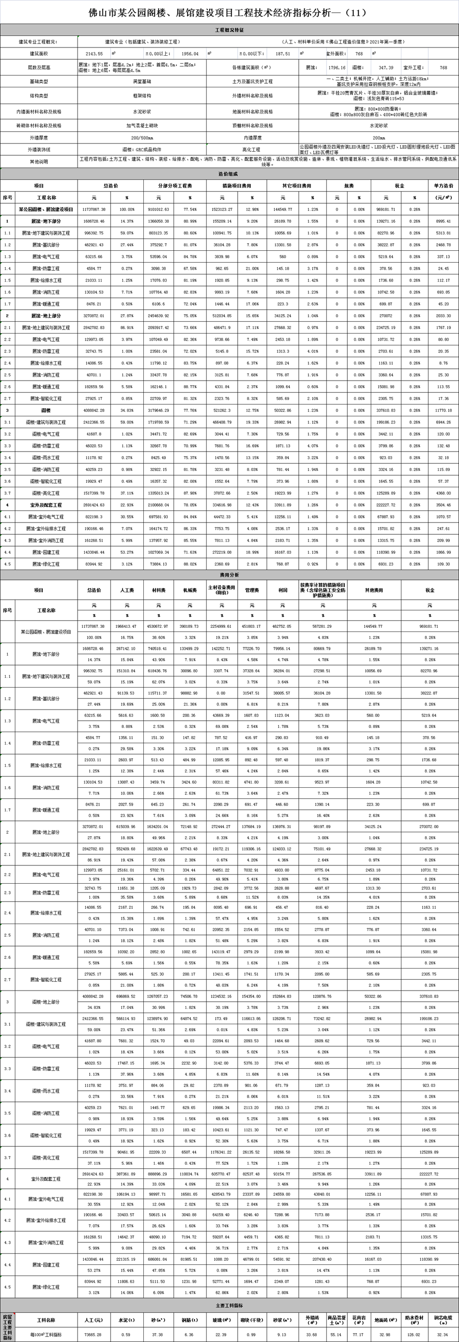 佛山市某公園閣樓、展館建設項目工程技術經濟指標分析—(11)