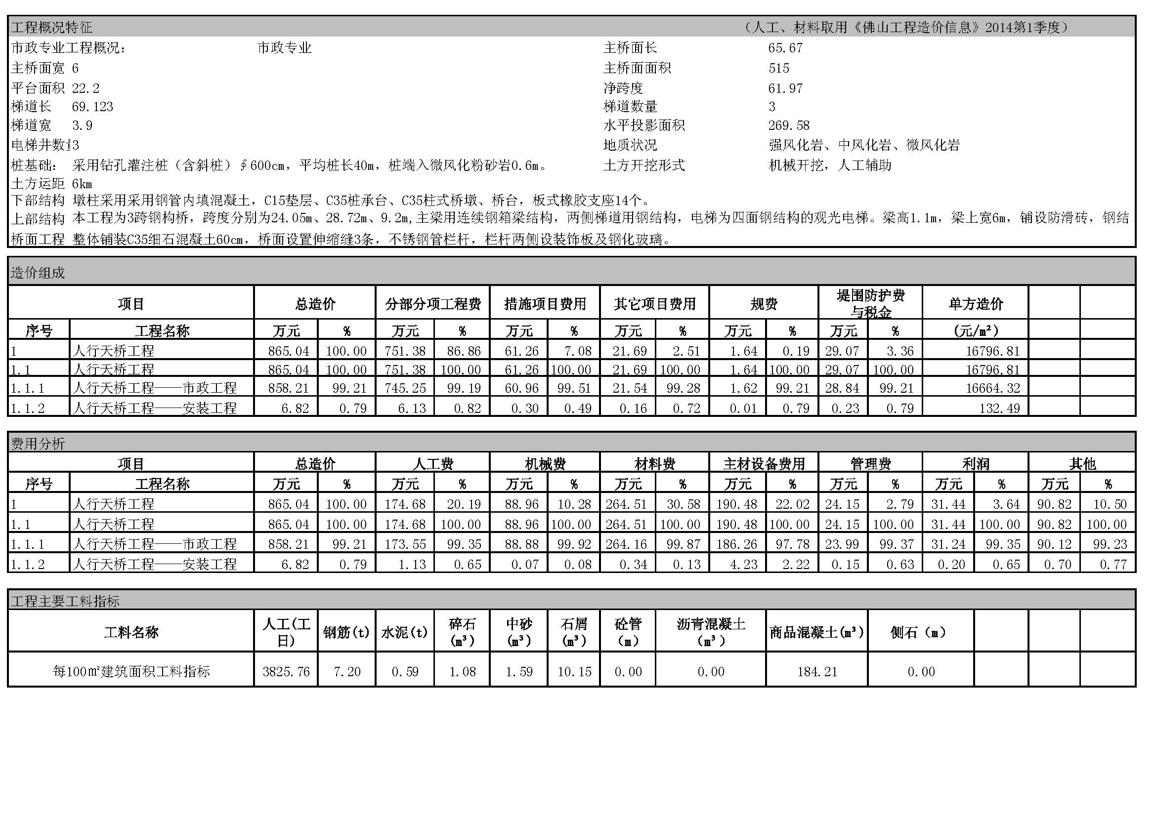 佛山市2014年第4季度技術經濟指標分析—某人行天橋工程案例