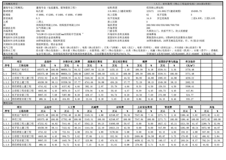 佛山市2015年第1季度技術(shù)經(jīng)濟指標分析—某商業(yè)廣場項目案例
