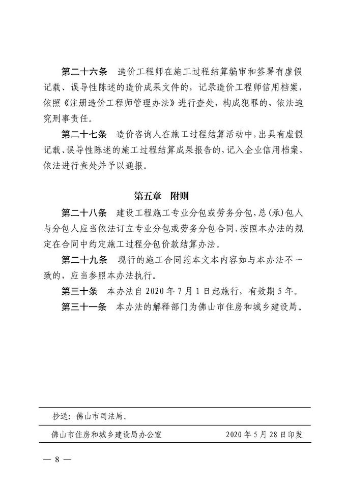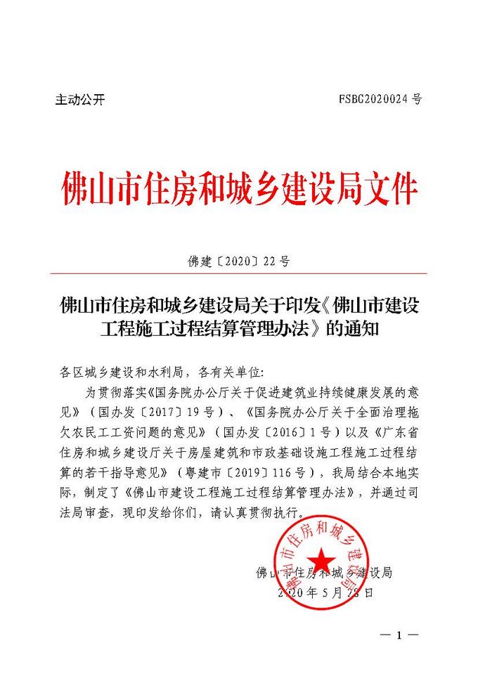 佛山市住房和城鄉建設局關于印發佛山市建設工程施工過程結算管理辦法的通知