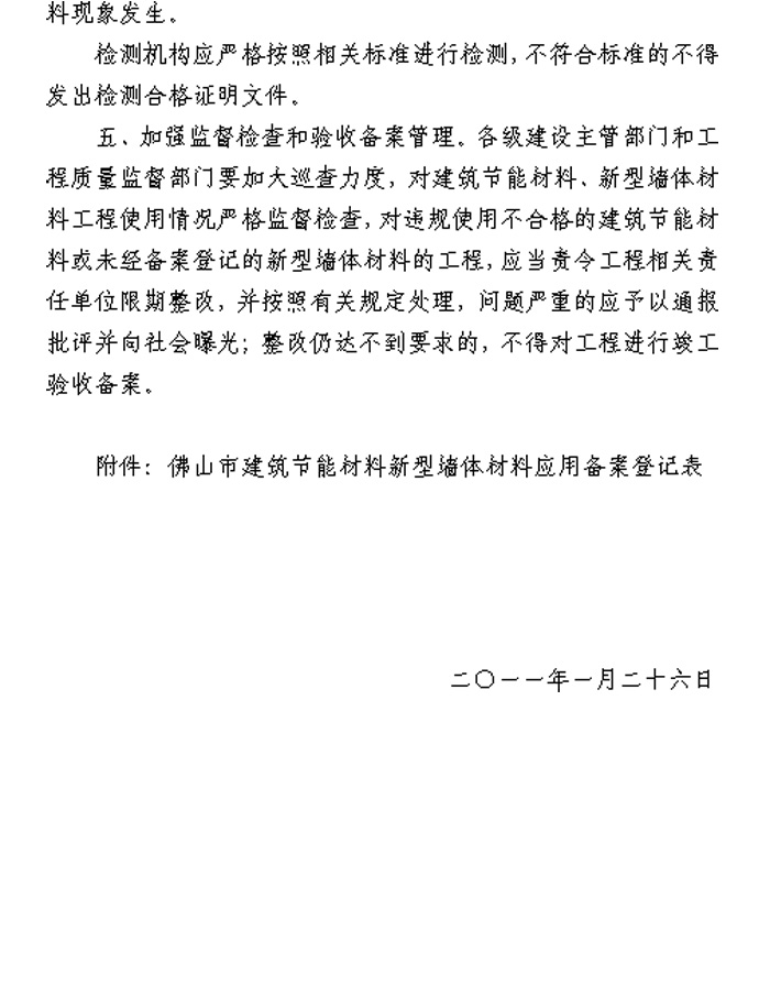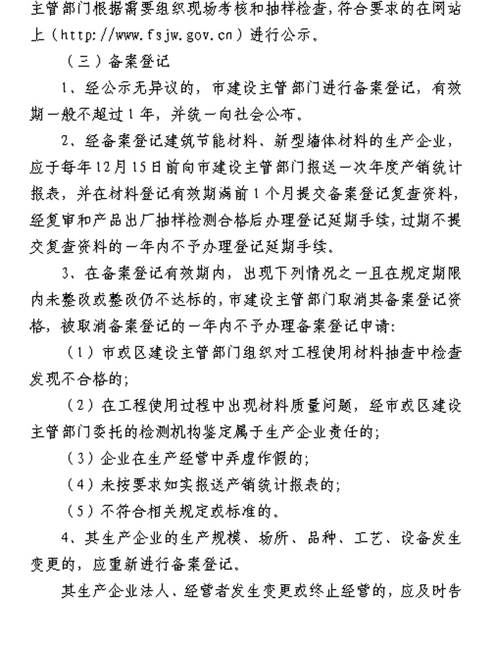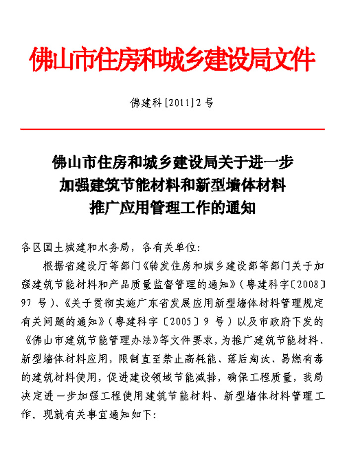 佛山市住房和城鄉建設局關于進一步加強建筑節能材料和新型墻體材料推廣應用管理工作的通知